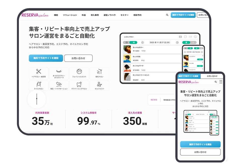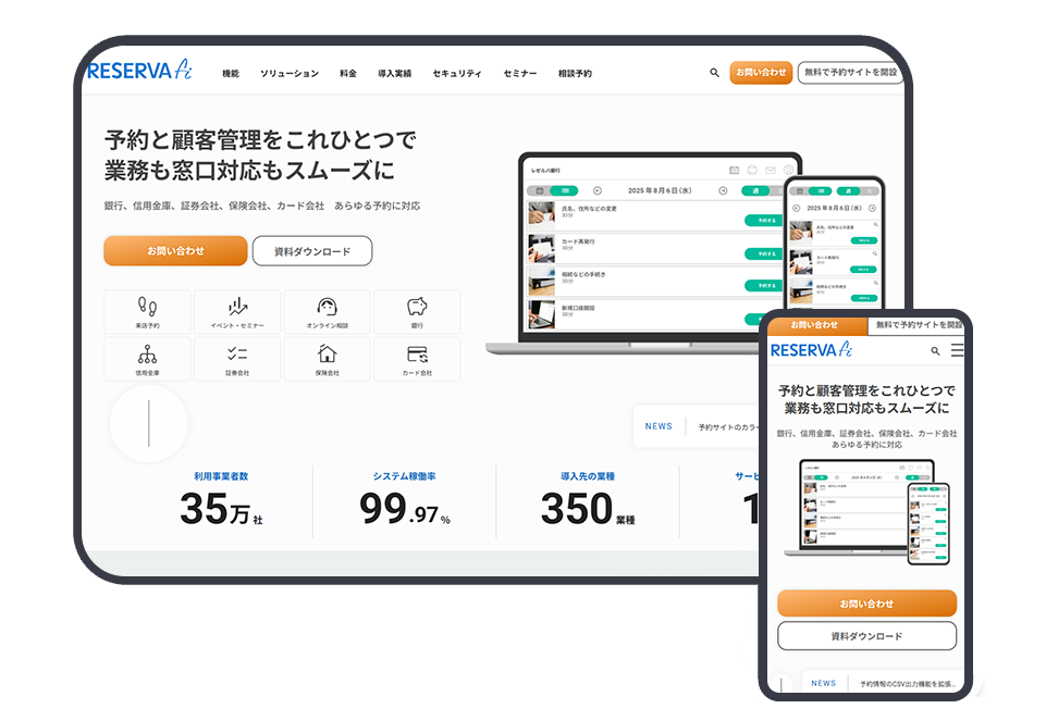 RESERVAは、350業種35万社に導入されている業界トップクラスの実績を有する予約システムです。予約受付や顧客管理の完全自動化を実現するために、高度なテクノロジーを駆使してサービス開発を行っています。