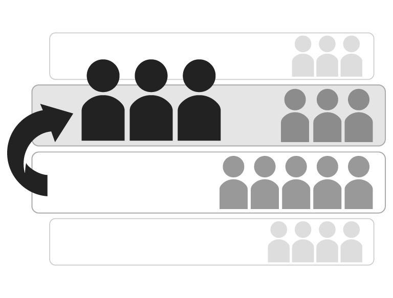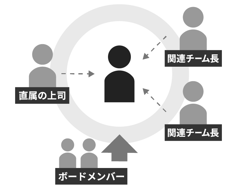 評価に、透明性を。評価するのは、あなたの仕事ぶりを実際に見た人たちです。成果と能力を正確に測るため、直属の上司に加え、一緒に業務をした業務関与者(複数名)が一次評価会議に参加します。